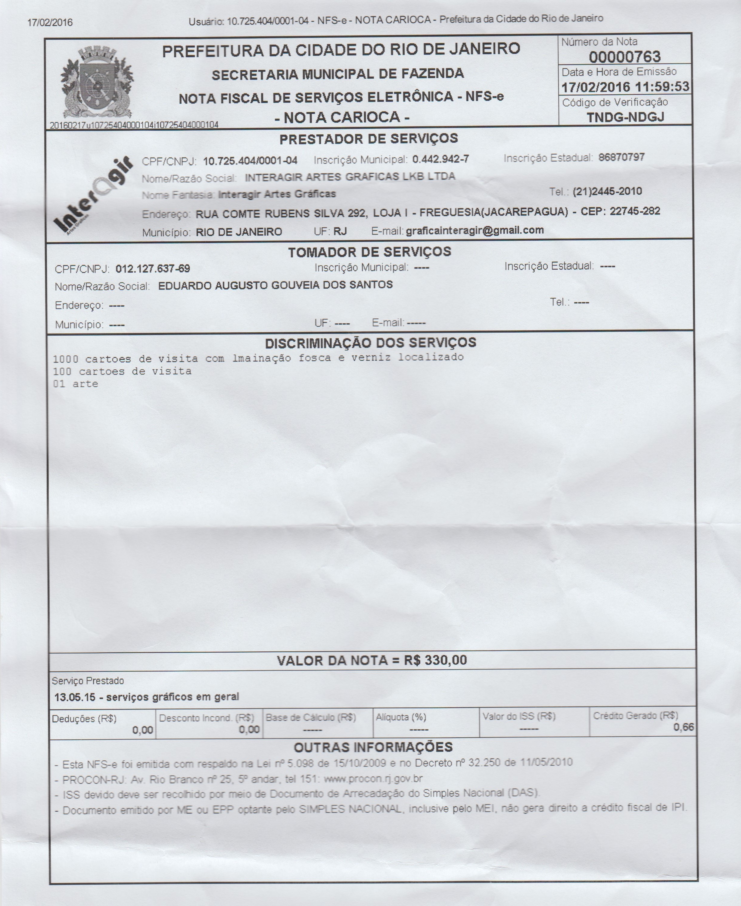 | 17/02/16 | comercial | 1 | 330,00 | 330,00 | 0,00 | 330,00 | cartoes de visita | interagir (comercial) |