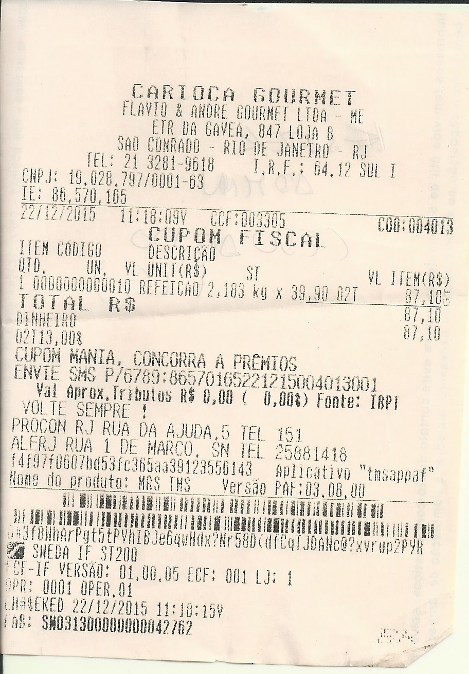 | 22/12/15 | Almoço em projeto | 1 | 87,10 | 87,10 | 0,00 | 87,10 | Almoço equipe | Carioca Gourmet (Proj Eduardo Figueiredo) |