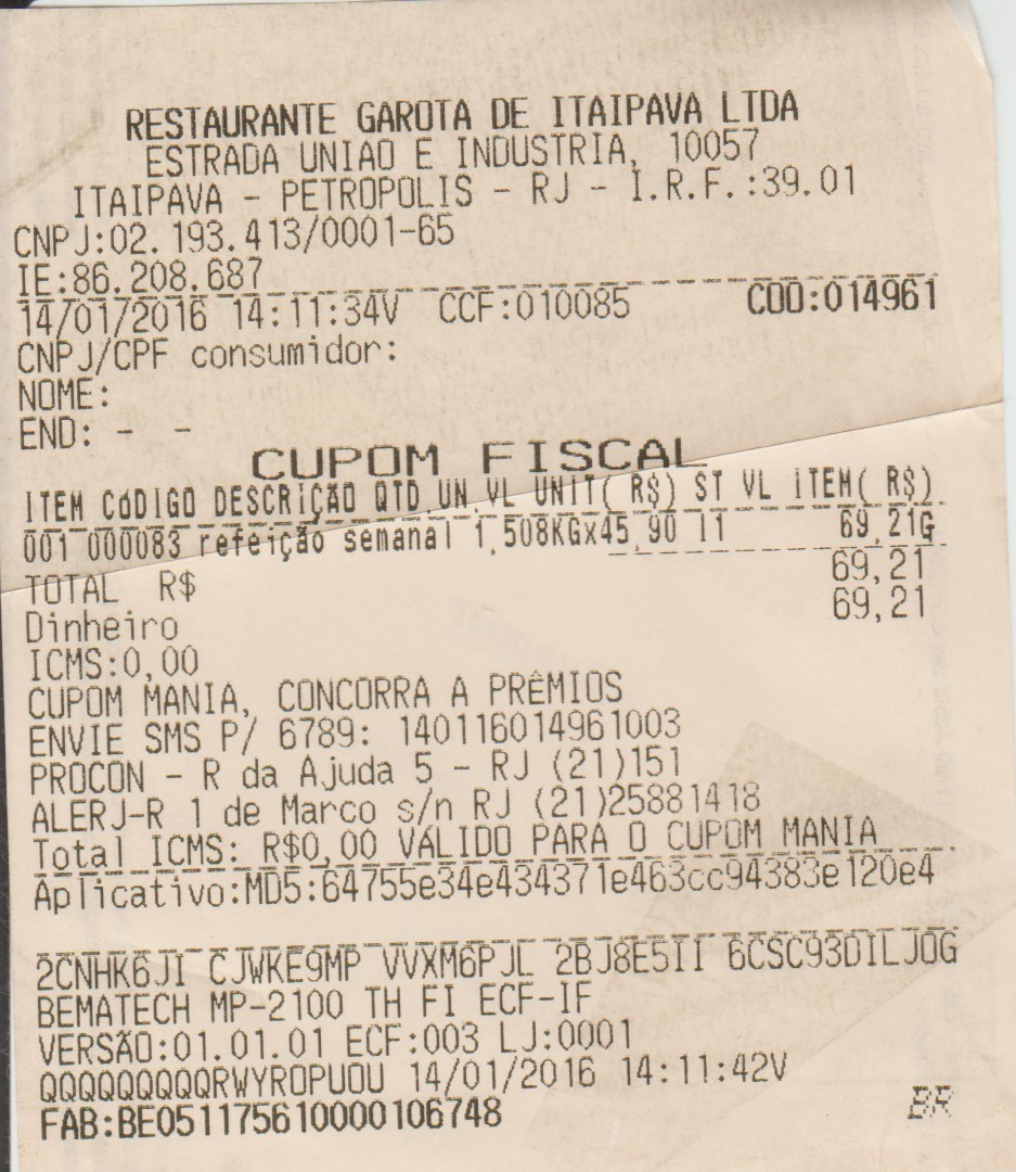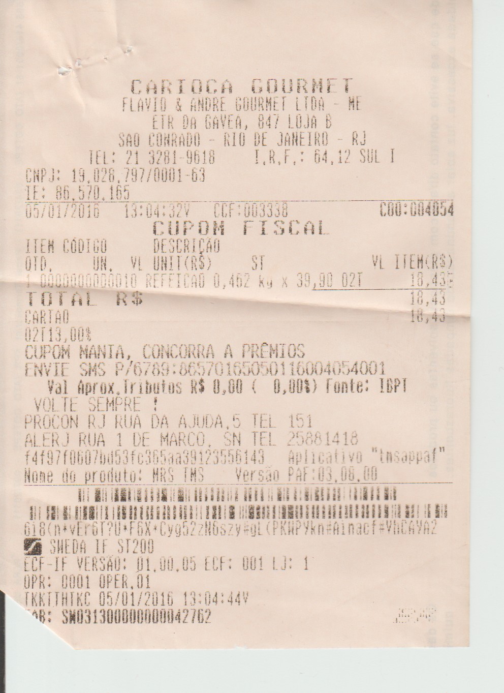 | 05/01/16 | Almoço em projeto | 1 | 18,43 | 18,43 | 0,00 | 18,43 | Almoço equipe | Carioca Gourmet (Proj Eduardo Figueiredo) |