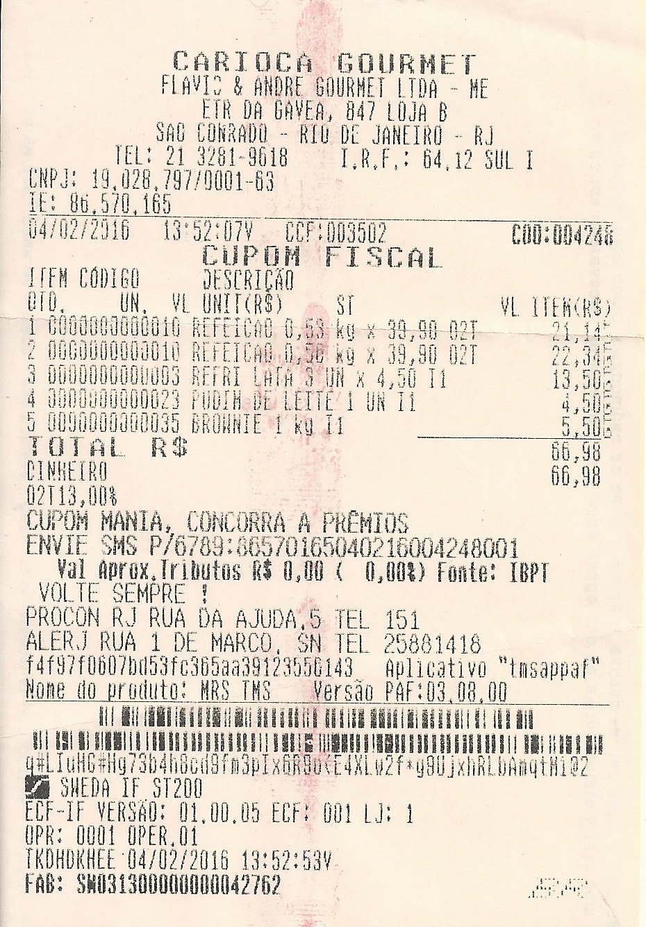 | 04/02/16 | Almoço em projeto | 1 | 66,98 | 66,98 | 0,00 | 66,98 | Almoço equipe | Carioca Gourmet (Proj Eduardo Figueiredo) |