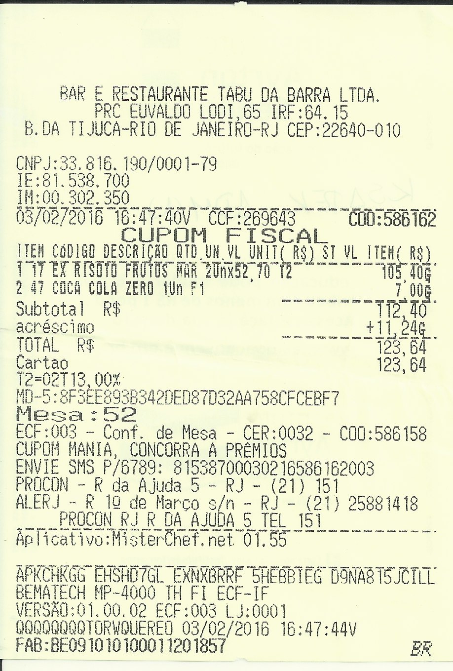| 03/02/16 | Almoço em projeto | 1 | 123,64 | 123,64 | 0,00 | 123,64 | Almoço equipe | Tabu da Barra (Proj Eduardo Figueiredo) |